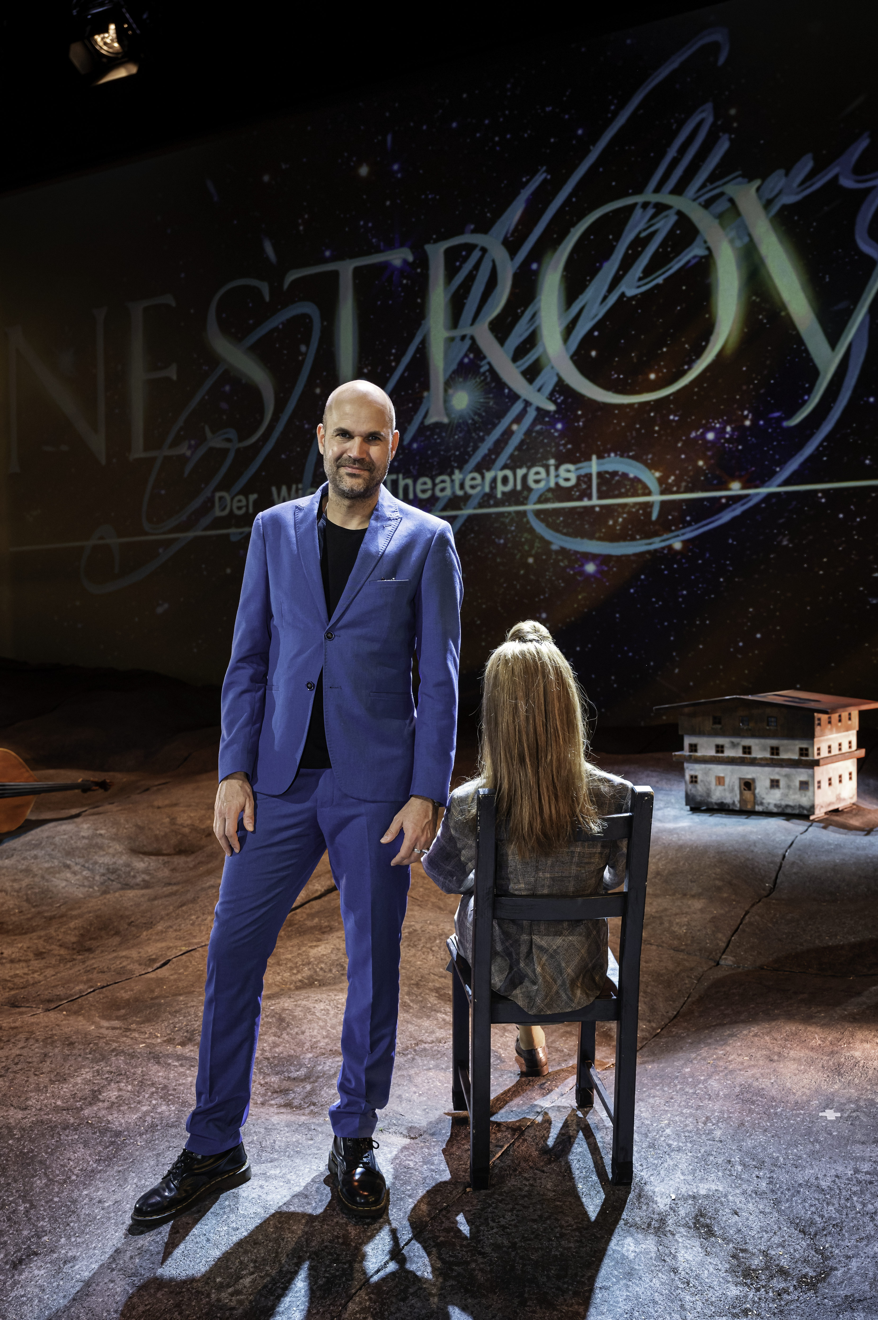 Intendant Nicolas Stemann und Jelinek-Puppe